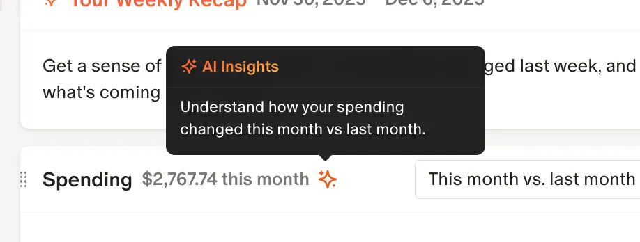 Insights are meant to reduce the mental load of financial review. Instead of piecing together information manually, you can tap a sparkle to see the most relevant takeaways from the data already on your screen.
