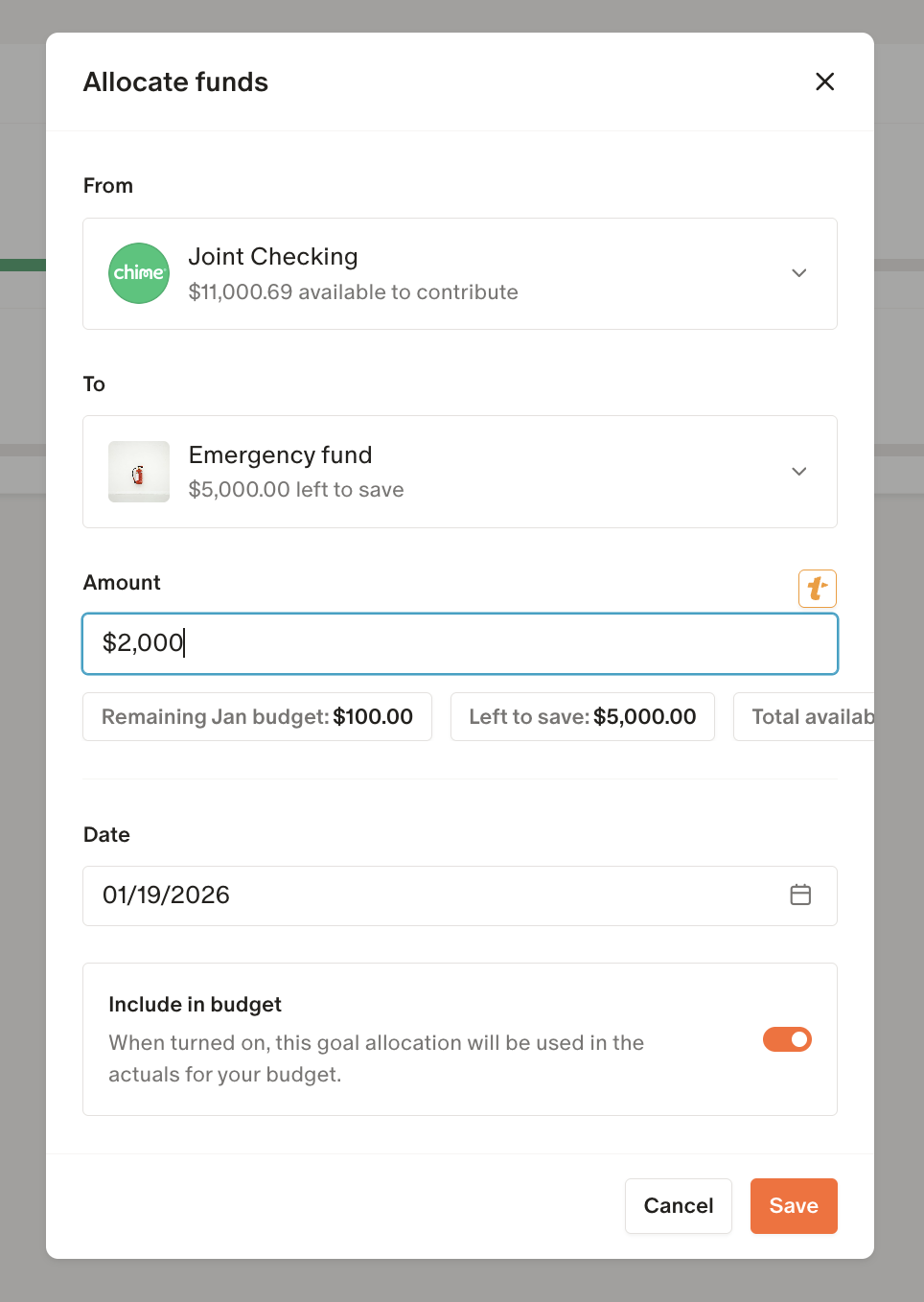 Hint: You can’t allocate more than what’s available in the account or goal; Monarch will alert you if you try.