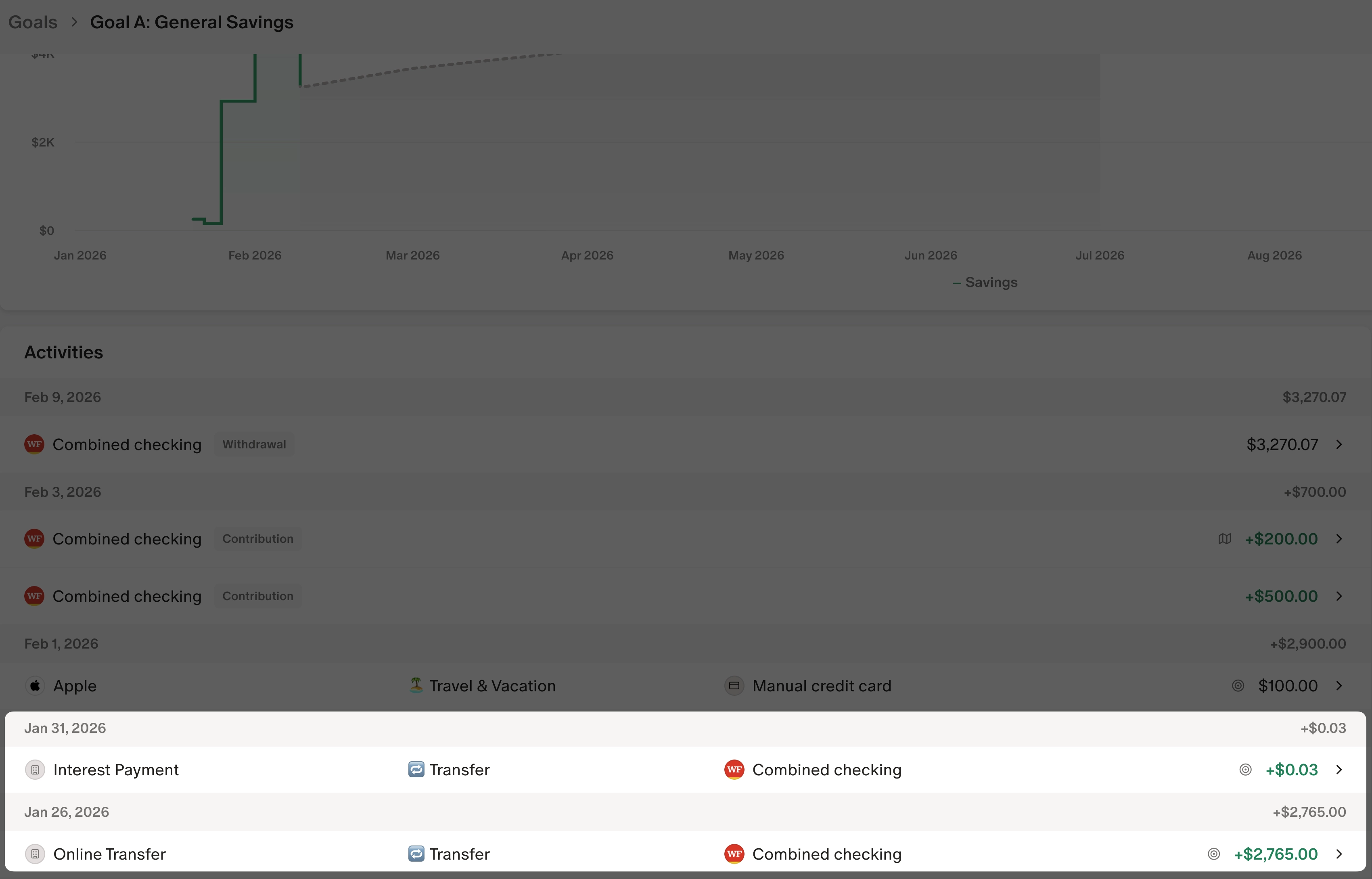 - A $4,000 transaction linked to the Vacation goal