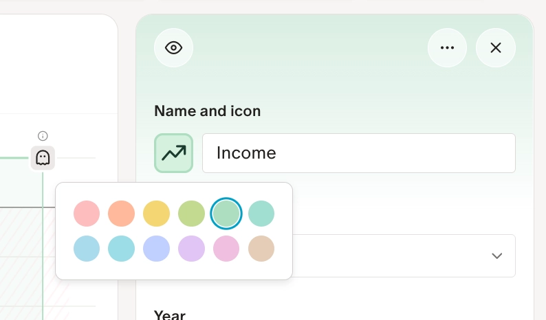 - Tooltips show you a summary of your projected net worth and cash flow for any given year when you hover over the chart.