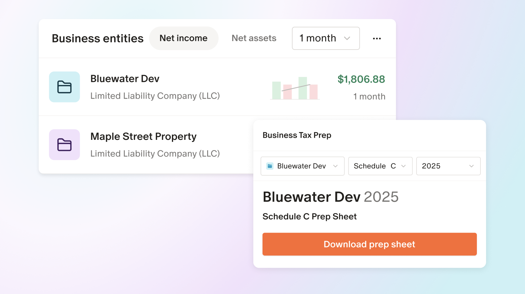 This gives you a “separate but connected” experience: your business finances stay separated when you want clarity, but you can still understand your complete financial picture in one place.